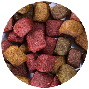 Milho Moído(1), Farelo de Soja(2), Farelo de Trigo, Quirera de Arroz, Farelo de Glúten de Milho 21(1), Farinha de Vísceras de Aves, Farinha de Carne e Ossos de Bovino, Óleo de Aves, Cloreto de Sódio, Vitamina A, Vitamina D3, Vitamina E, Vitamina K, Vitamina B1, Vitamina B2, Vitamina B6, Vitamina B12, Niacina (Ácido Nicotínico), Ácido Pantotênico, Ácido Fólico, Cloreto de Colina, Sulfato de Ferro, Sulfato de Cobre Pentahidratado, Óxido de Zinco, Sulfato de Manganês, Iodato de Cálcio, Selenito de Sódio, Hidrolisado de Fígado de Aves, Prebiótico (Mananoligossacarídeos), Adsorvente de odor (Extrato de Yucca schidigera), Antioxidante B.H.T (Butilhidroxitolueno), Conservante (Propionato de Cálcio).